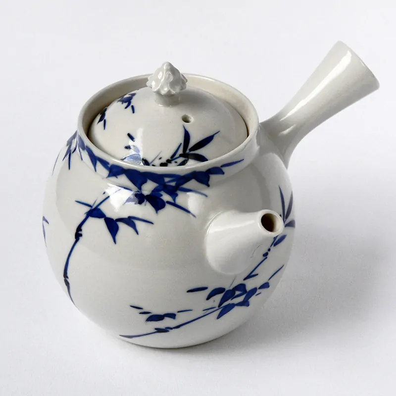 Porcelain side-handled teapot from the Seishō kiln, Kyoto