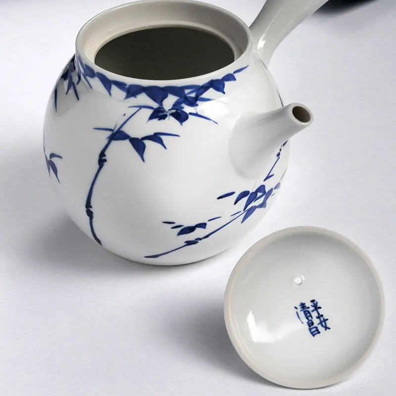 Katō Seishō runs his own pottery studio near Sennyu-ji Temple in Kyoto’s Higashiyama Ward. He often adds the finishing touches to the white porcelain made by his father, Seisho II, using delicate underglaze painting. His work stands out for its fine, detailed designs and elegant style. Seisho’s painting and decorating skills have been highly praised, especially when his pieces were featured at the Japan Sencha Crafts Exhibition, held every May at Ohbakusan Manpuku-ji Temple as part of the National Senchado Party.