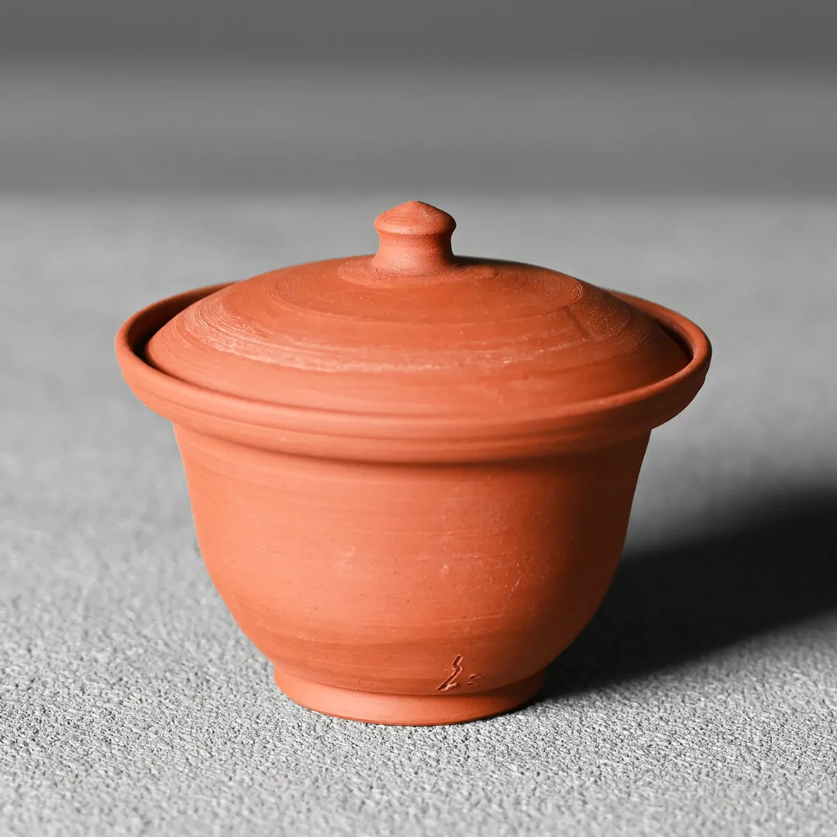 The Honshudei clay has a yellowish-brown color, that turns red during firing thanks to its high iron content. This teapot was fired in an oxidation chamber at a lower temperature for a longer time, which is why the warmer tone of the finish. In continual use, the surface will gradually become smoother and shinier.