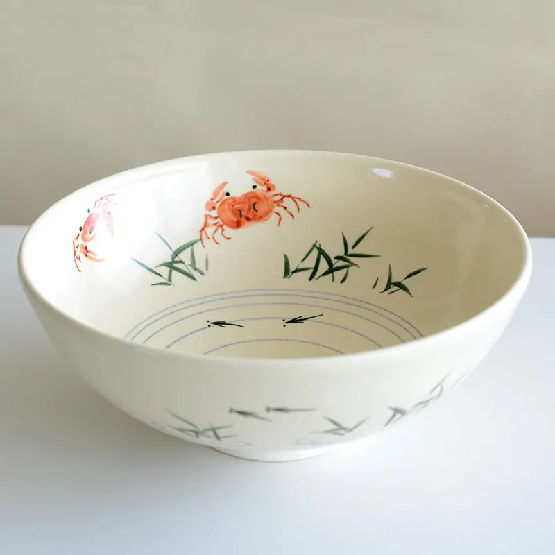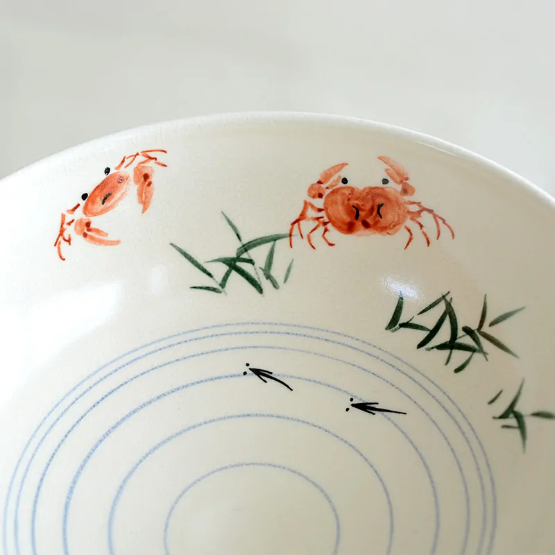 Handmade and hand painted matcha tea bowl with painted “Sawagani”, Japanese freshwater crab inside and killifish inside & outside.