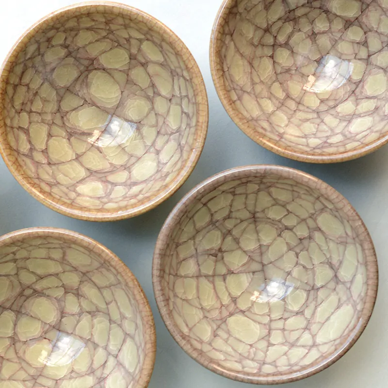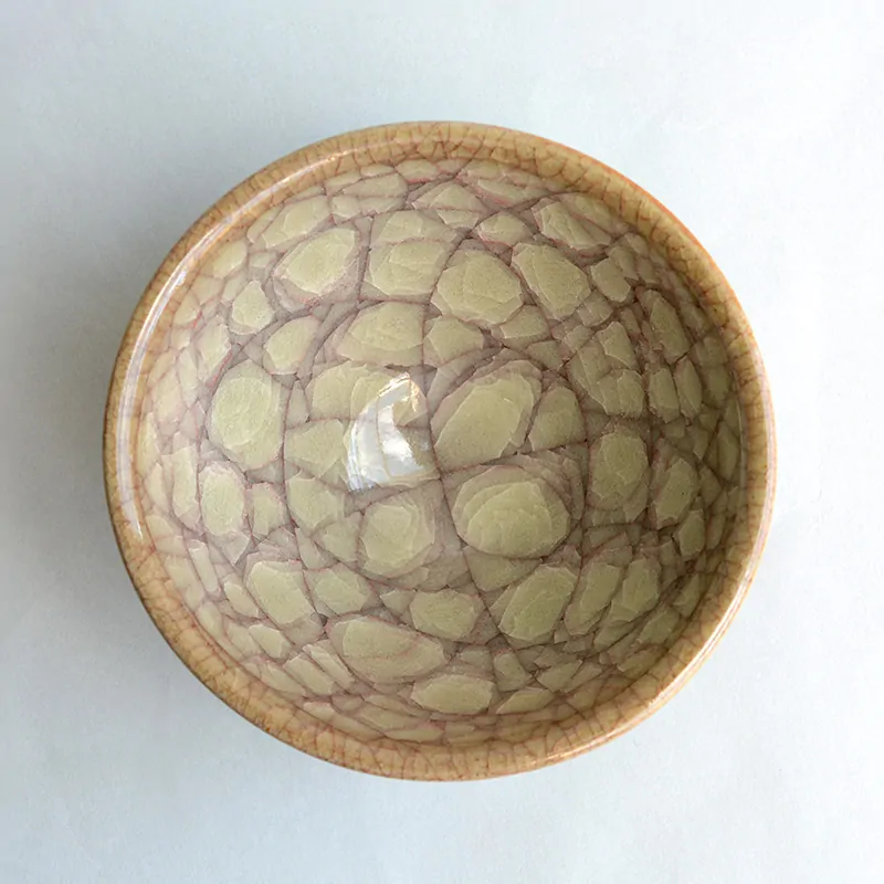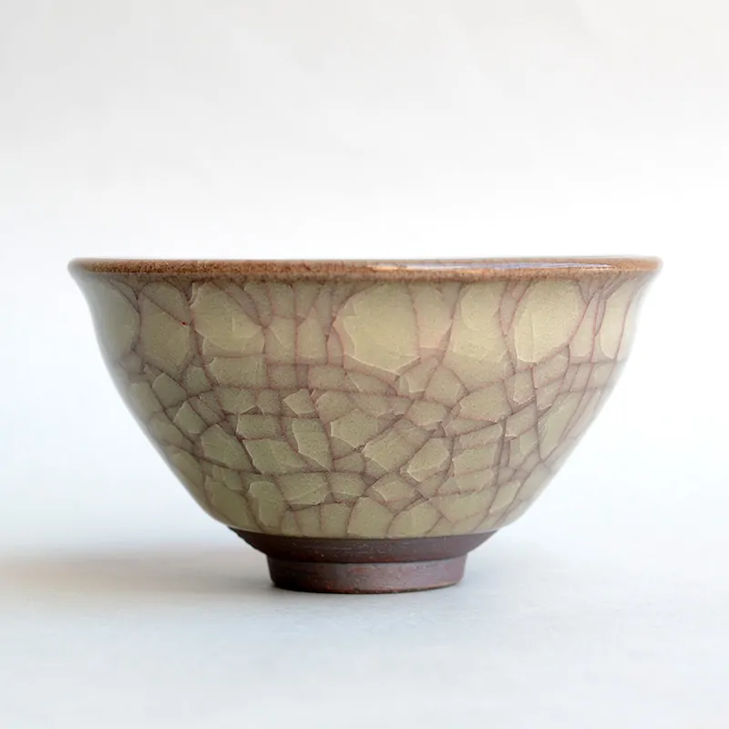 The name of “Beishoku” derives from the color of rice straw. Contrary to the blue color celadon, this teacup turns yellow by oxidation firing.