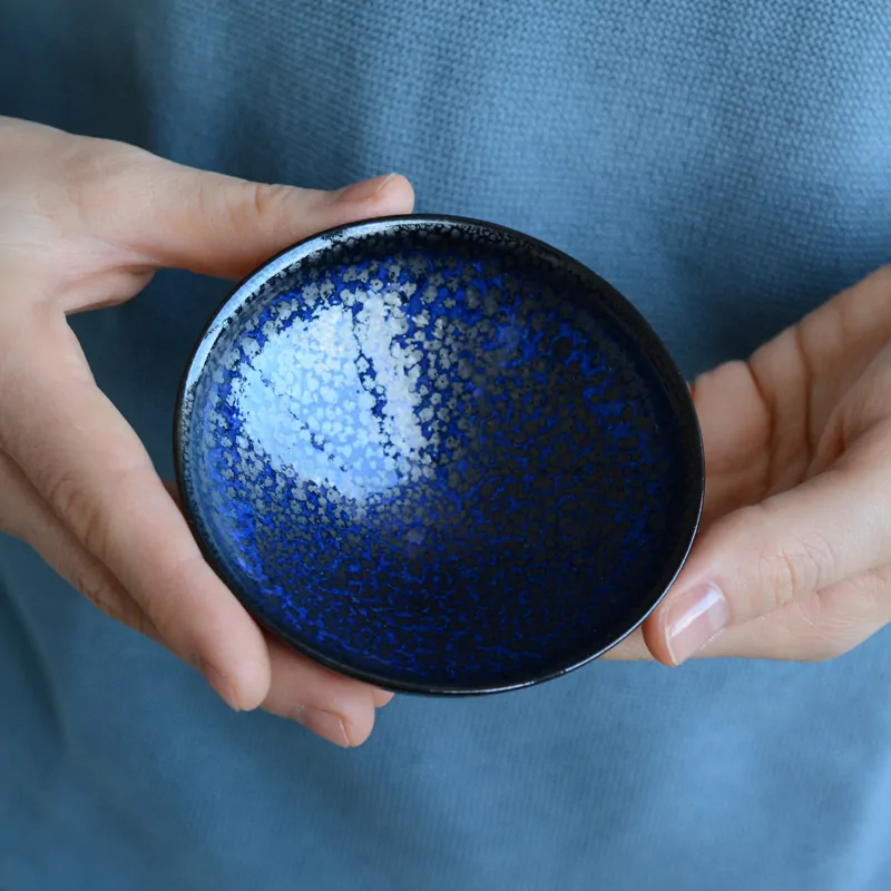 「油滴」釉薬を使った芸術的な平型の酒盃。 酒盃ですが、お茶をお飲みいただくのにもぴったりです。