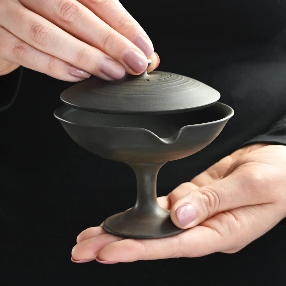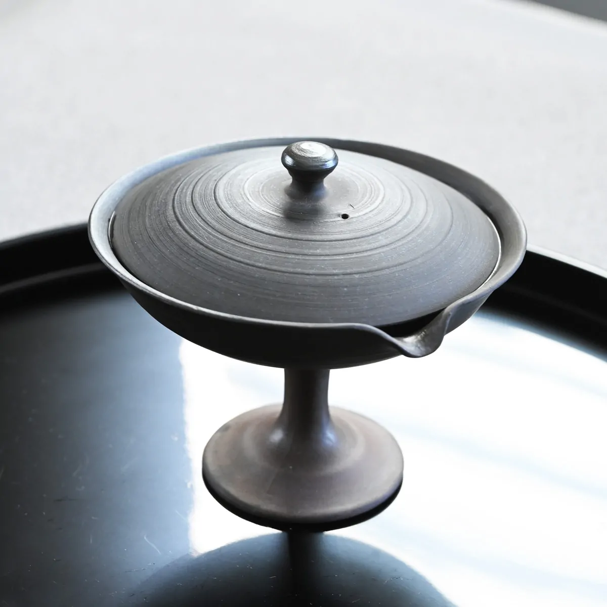 The Gyokko Kodai shiboridashi was worth the investment. This is my fourth shiboridashi from Sazen and found that the function all of these different styles of vessels were excellent. The Gyokko Kodai pours beautifully - fluid steam, right down to the last drop. I tested this vessel with 5 grams and 3 grams of tea and the pour from this shiboridashi flowed easily out of its delicate lip and did not leak from around the lid - even with a marked degree of tilt. The vessel was warm and comfortable to handle when I poured the 60 degrees Celcius (140 deg F) water into the vessel to steep tea. There was no unevenness of heat distribution when you cupped the shiboridashi. The knob on the lid was temperate. The tea leaves distributed itself quite evenly without clumping at the lip during the pour - see image is after 4th steep (3 grams tea) with no manual manipulation of tea distribution after pour. It was evident with 5 grams and 3 grams of tea. The vessel's capacity is stated at 2.7 oz. It yielded 2 oz of brewed tea for me. Aesthetically, it is simplistic elegance and the dark clay gives a very stark contrast against the steeped green tea leaves. The clay is smooth and bowl cups comfortably in the palm and weight of the vessel with and without tea in it does not bear any remarkable or noted changed. The initial tea used for this Gyokko Kodai vessel was a Tencha and the next day a Shuppin Hana. It is definitely excellent for the Senchas styles.