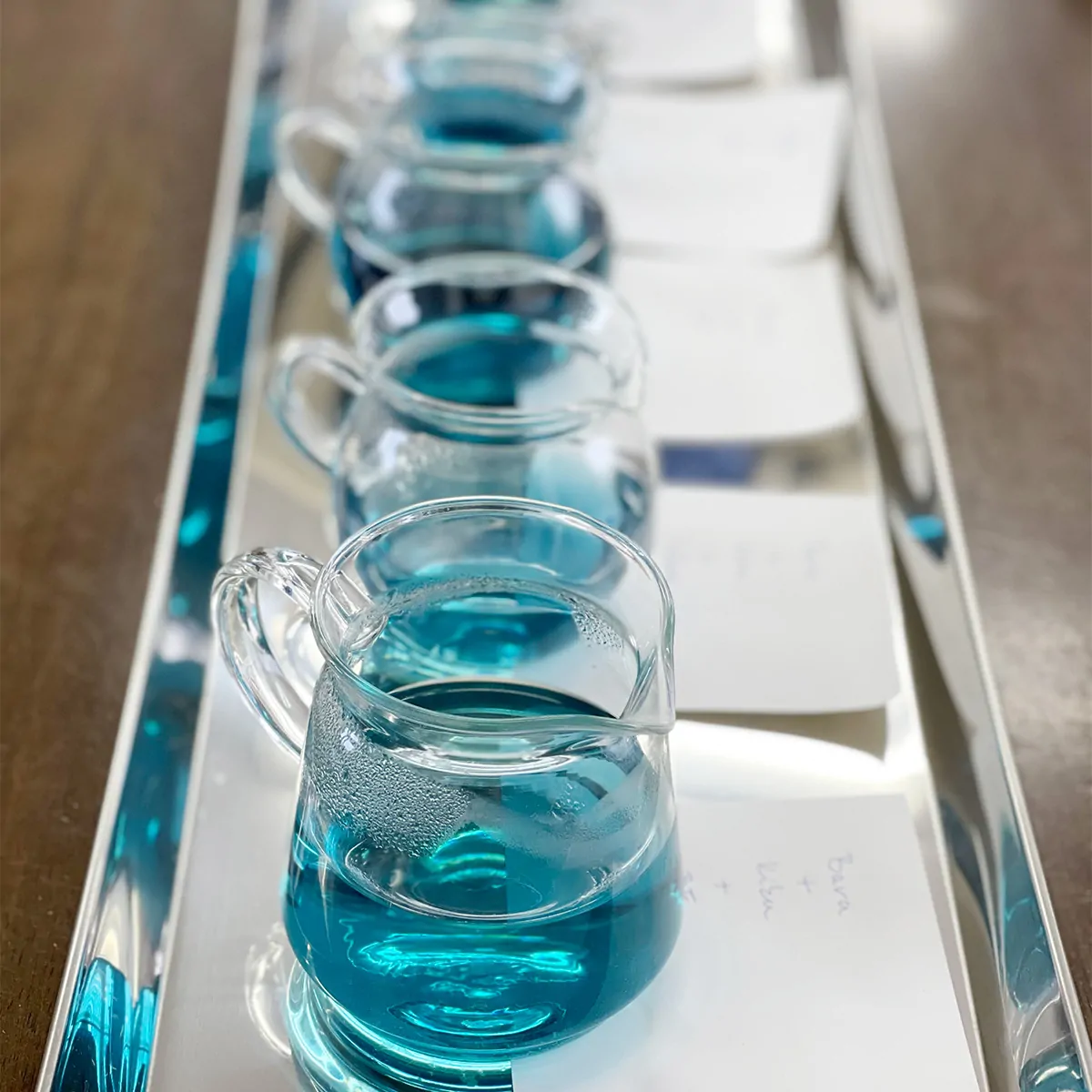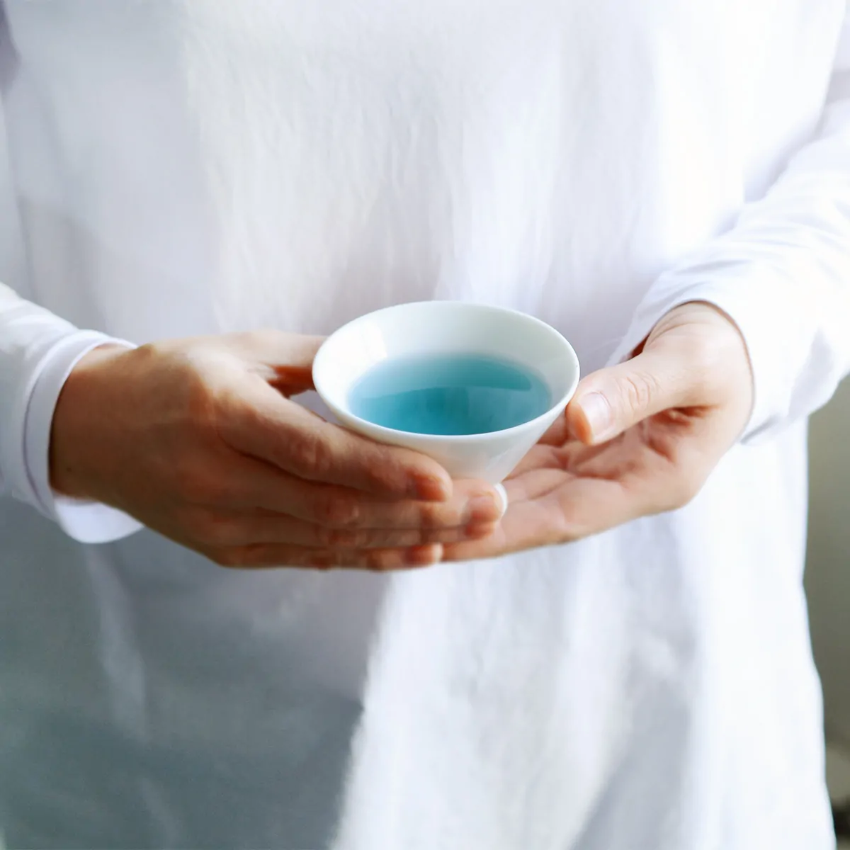 最初はお湯を使用しますが、2煎目以降は低温のお湯もしくは水を使用していただくことで、お茶の青色を美しい青色に保つことができます。