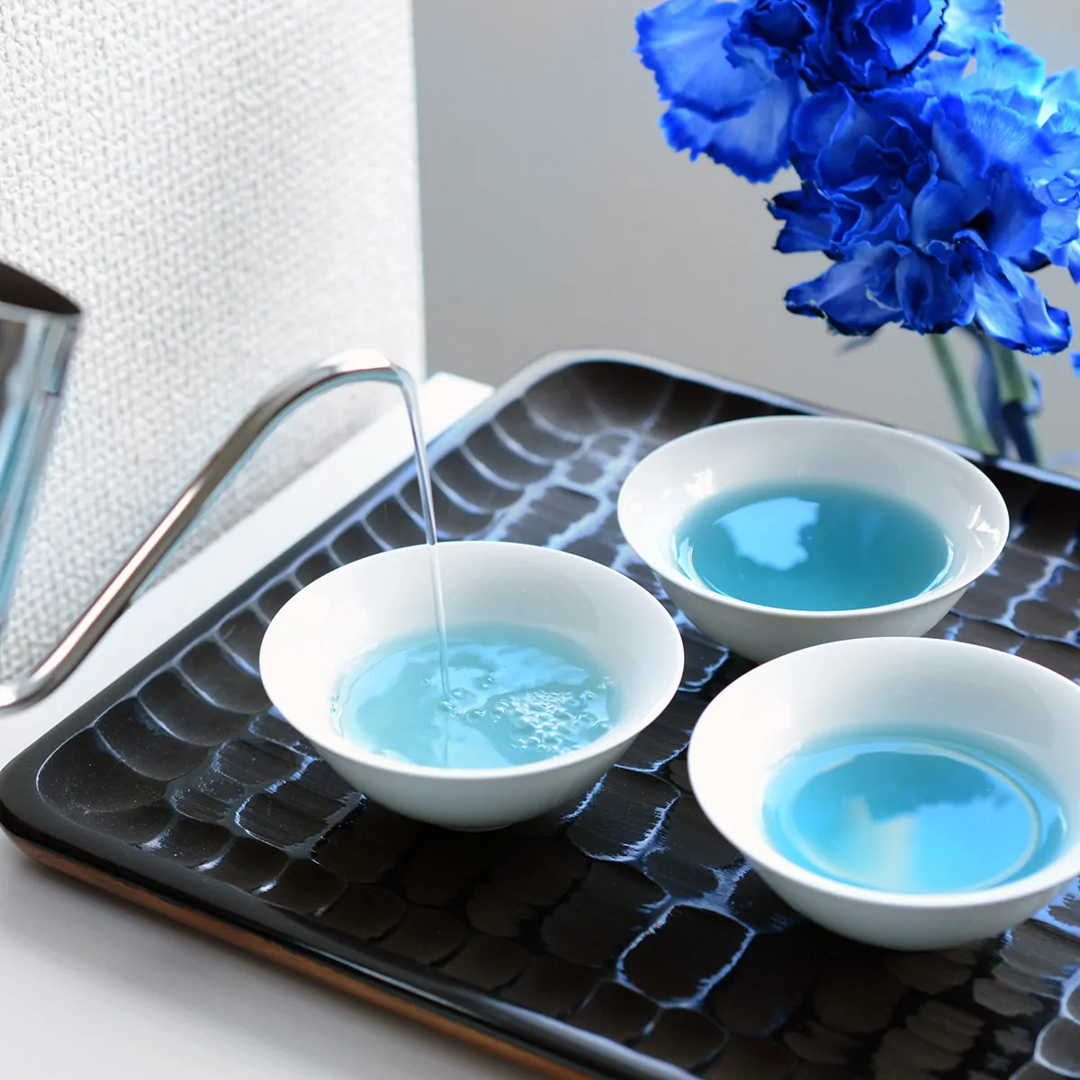 この青いお茶にレモンを加えると、ピンクがかった紫色に変わりますので、ぜひ一度お試しいただき、色の変化もお楽しみください。