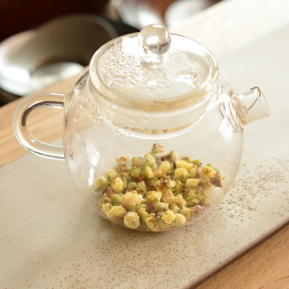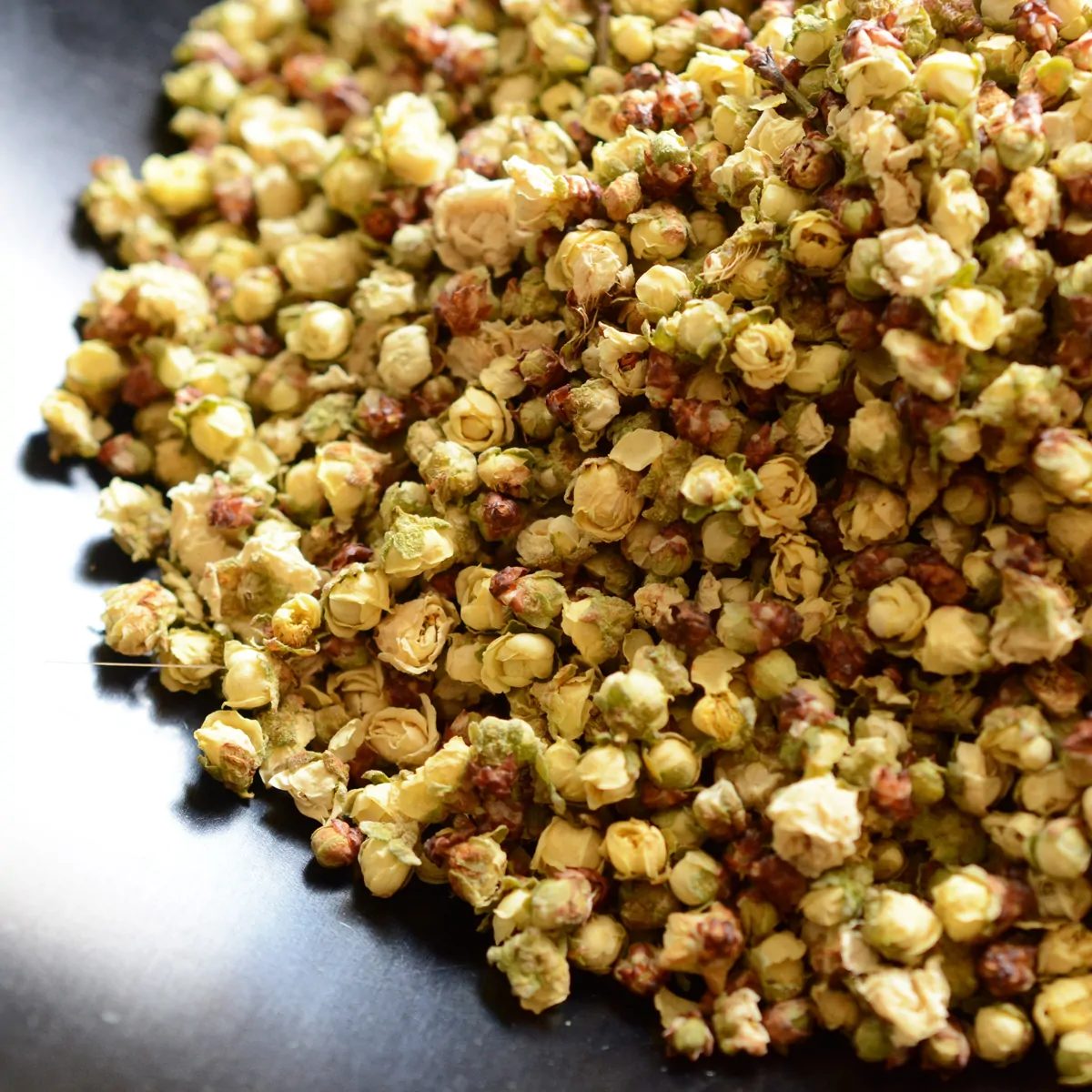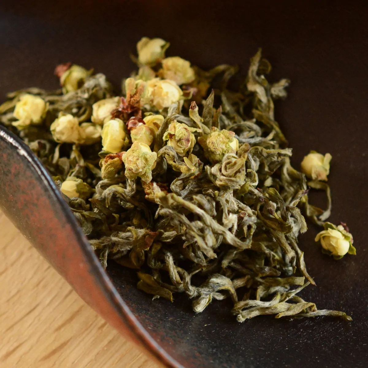 花が完全に開く前に摘み取られるため、凝縮された強い香りが保たれています。梅の花から作られたお茶は、美味しいだけでなく、漢方薬としても広く用いられています。抗酸化物質を豊富に含み、心を落ち着かせ、消化を助けると言われています。