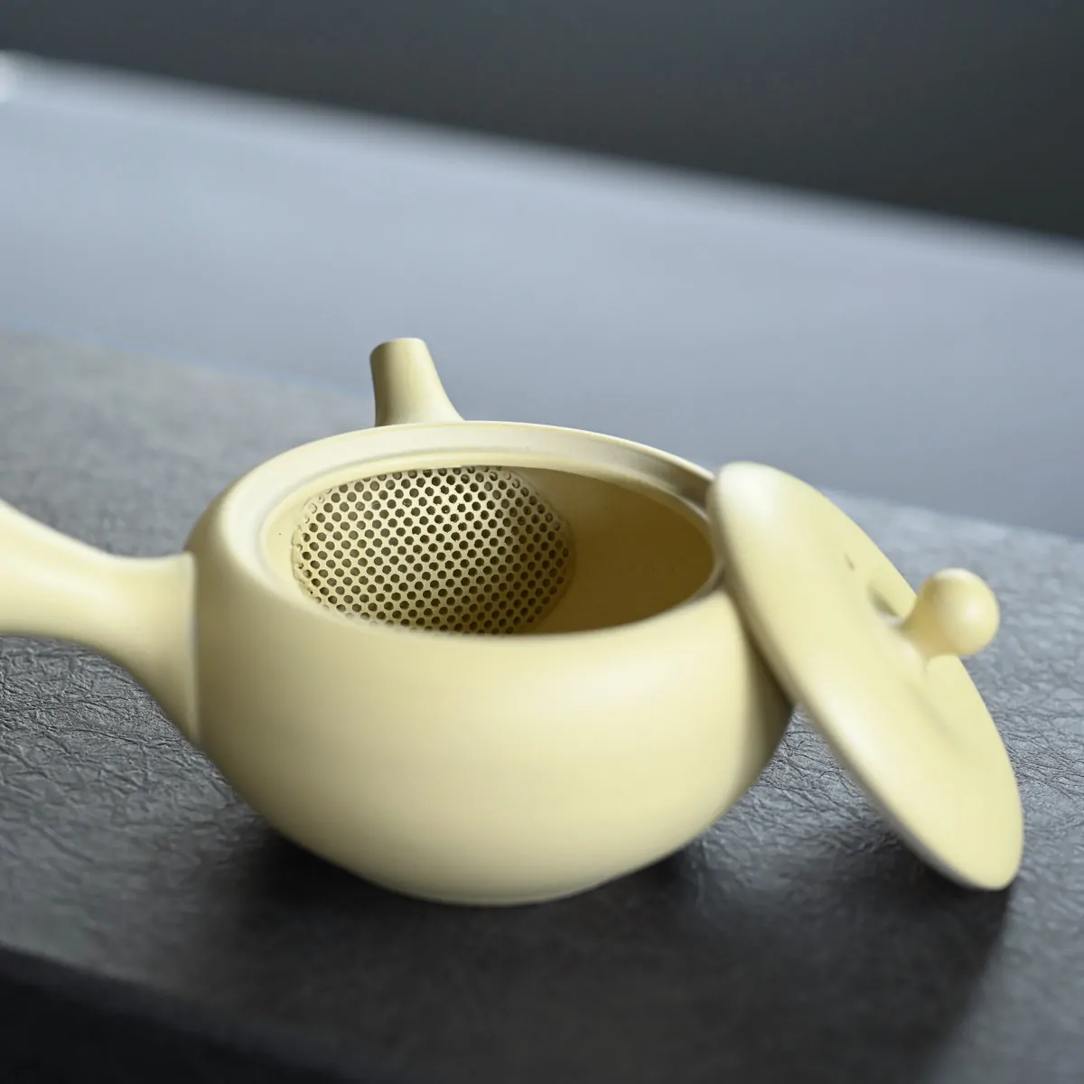 常滑焼 高急陶苑の使い勝手の良い急須と湯冷ましは無釉で、煎茶碗の内側には釉薬がかけられています。