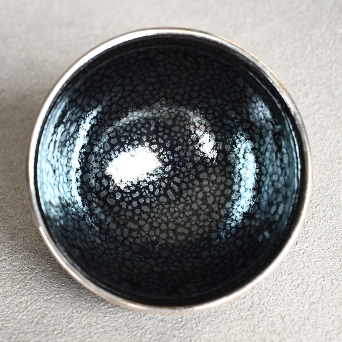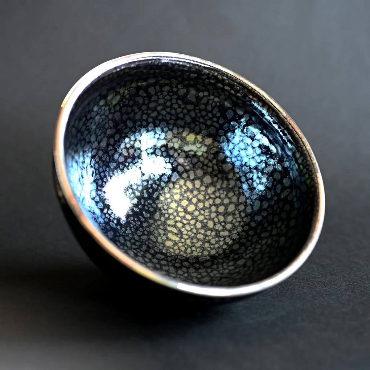 その中でも、油が飛び散ったような美しい銀色の斑紋は「油滴」とよばれています。