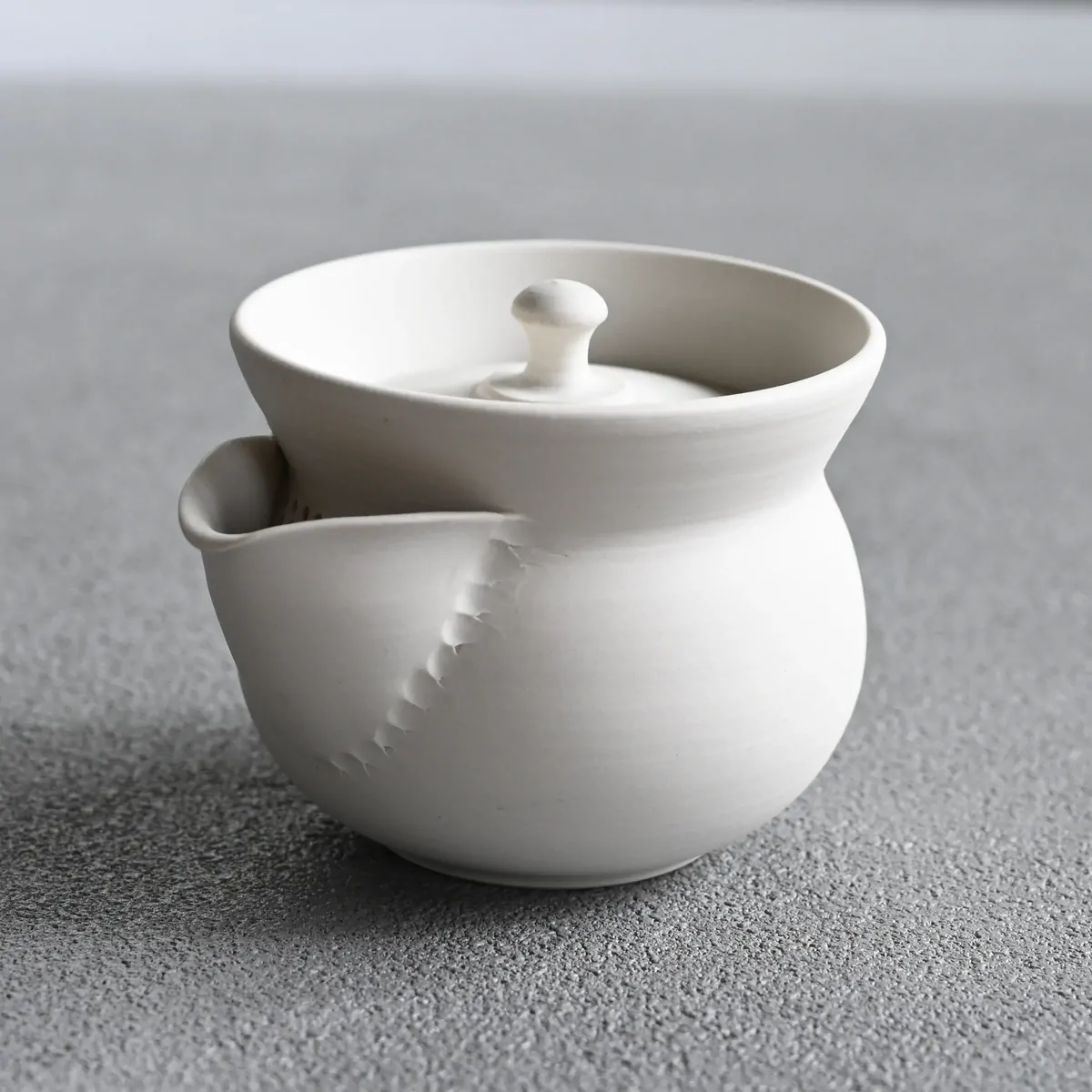 「胴・蓋・持ち手・注ぎ口」という4つのパーツを別々に作り、寸分狂わぬバランスで接合する技。