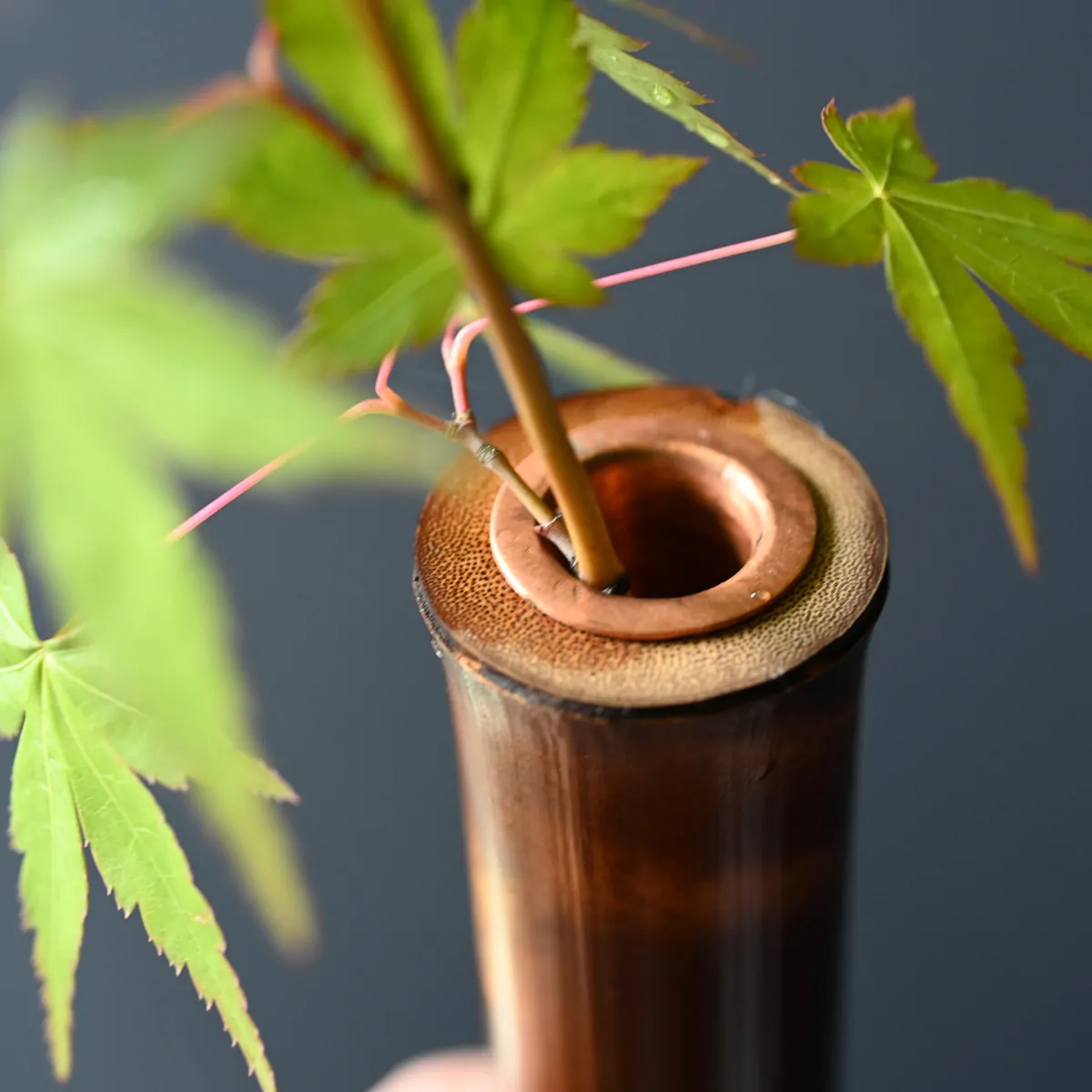 先人たちの生活と共に百年、二百年の年月をかけ自然に生み出される独特の色・傷・割れ・香りは唯一無二の景色として、また永い年月を経てきた竹の続きをお花と一緒にお楽しみ下さい。