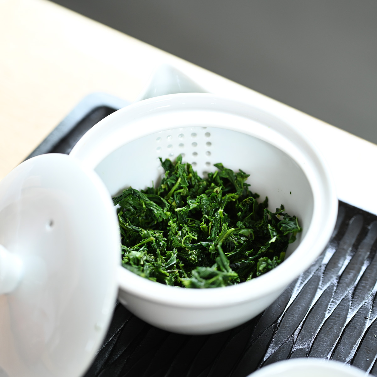 この朝宮玉露さえみどりは、優しくバターのような口当たりで、トーストしたような香りとほのかなスイートコーンの風味が広がります。パン・オ・ルヴァンの素朴な酸味を思わせる味わいで、後味は力強く青々とした味わいです。