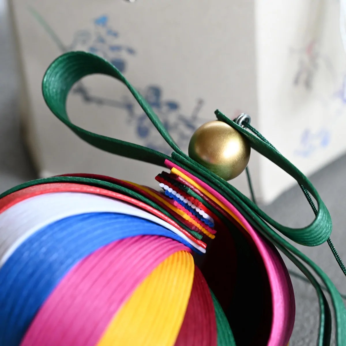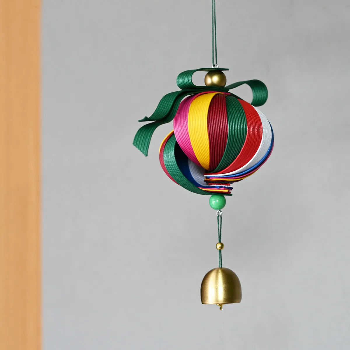 「boksora 風鈴」は、韓国の伝統色の美しさと幸運の意味を込めた、再生紙バンドを使用した工芸品です。