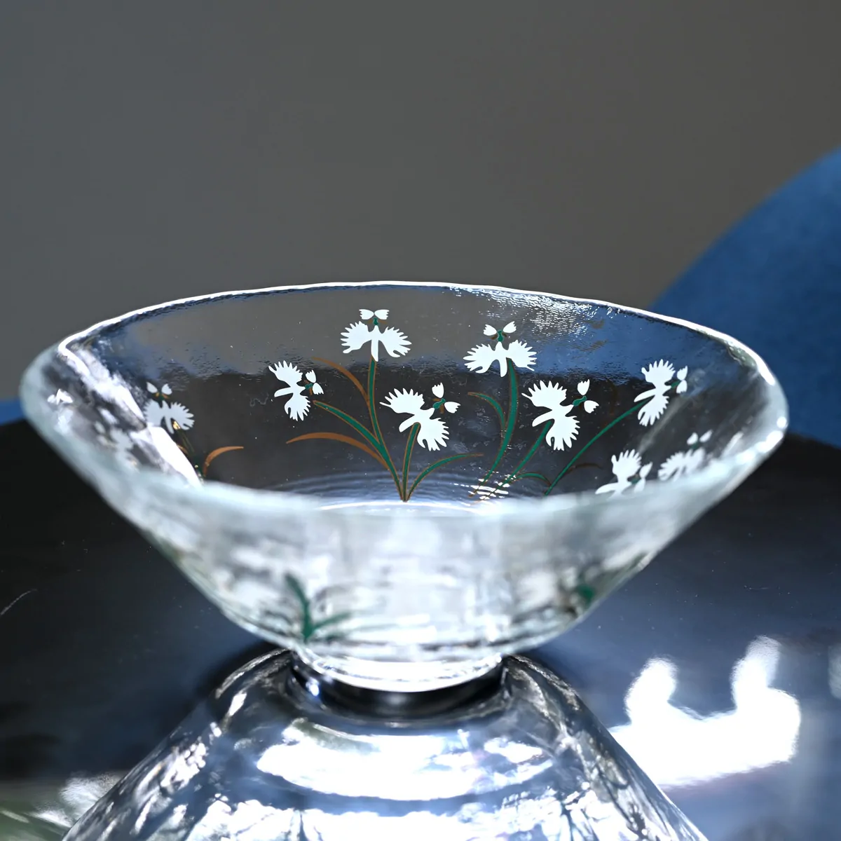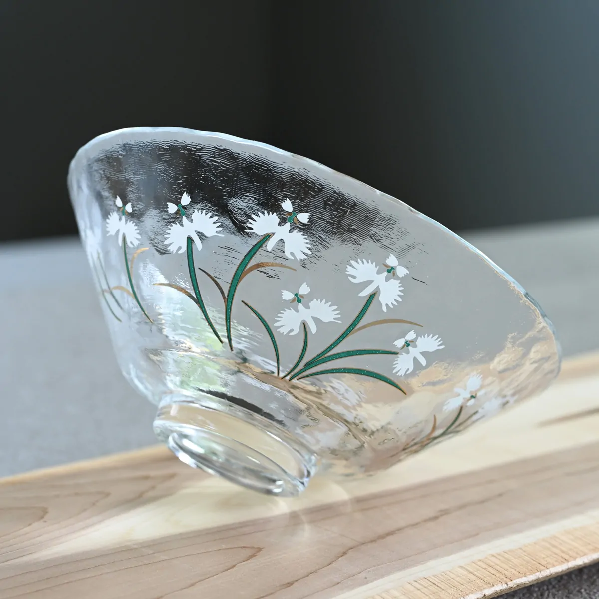 手造りされたこちらの涼しげな硝子茶碗で、新鮮で美味しい抹茶をお楽しみください。