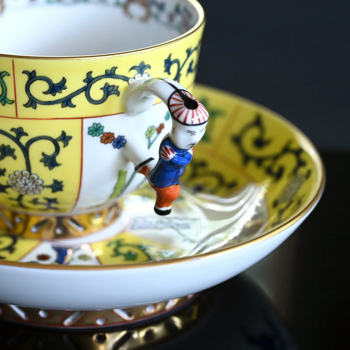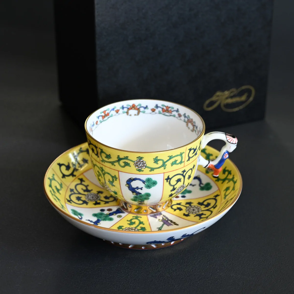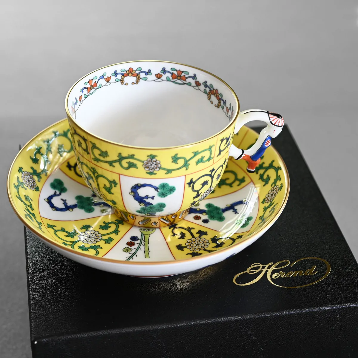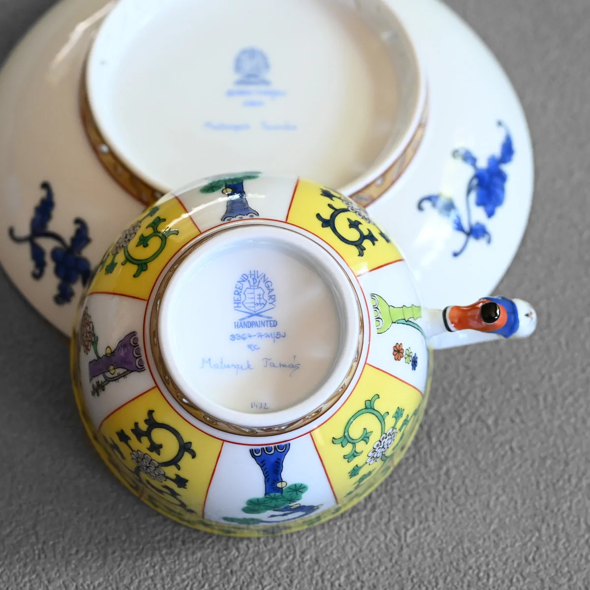ている。カップの取っ手にはヘレンドのキャラクター「マンダリン」