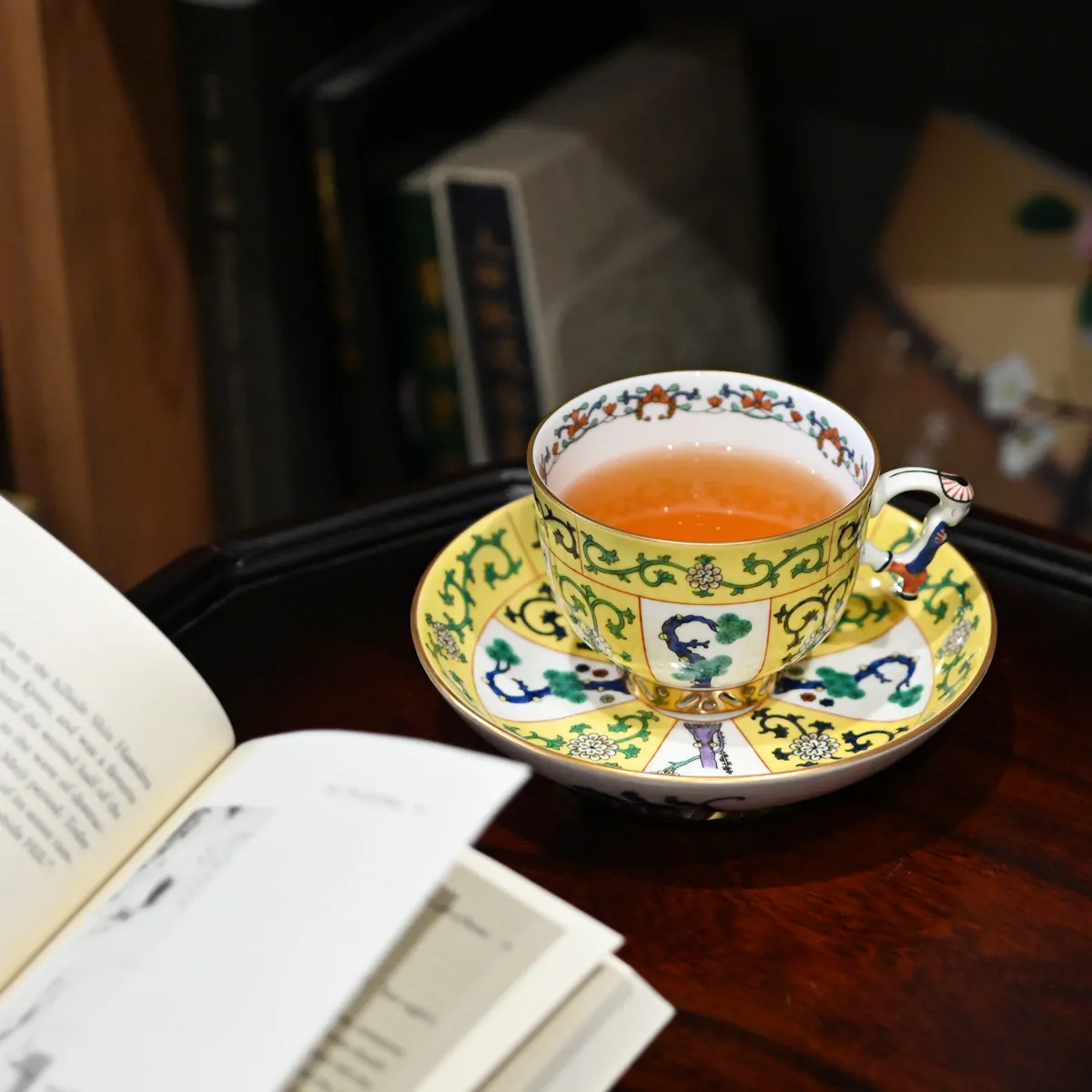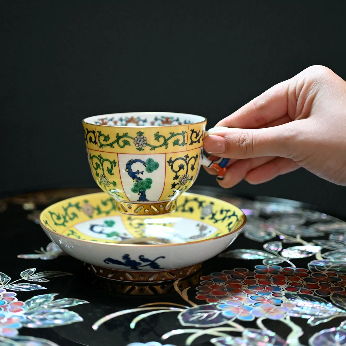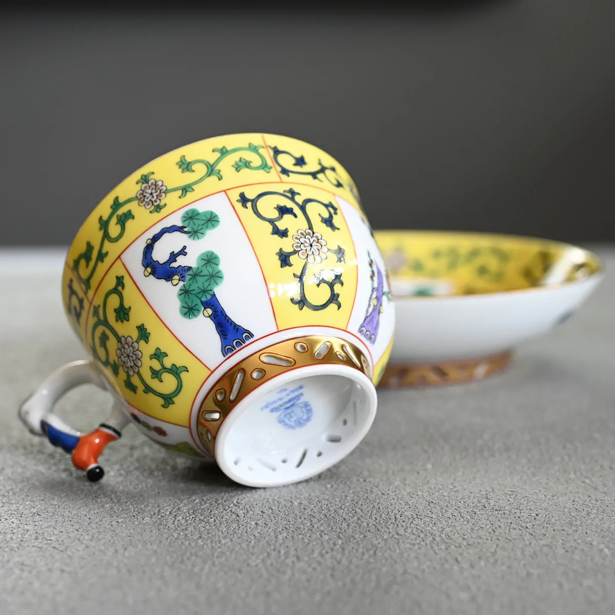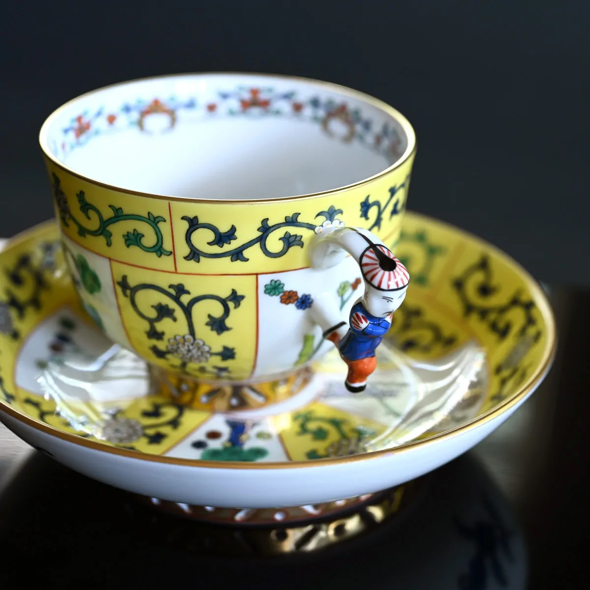 ている。カップの取っ手にはヘレンドのキャラクター「マンダリン」