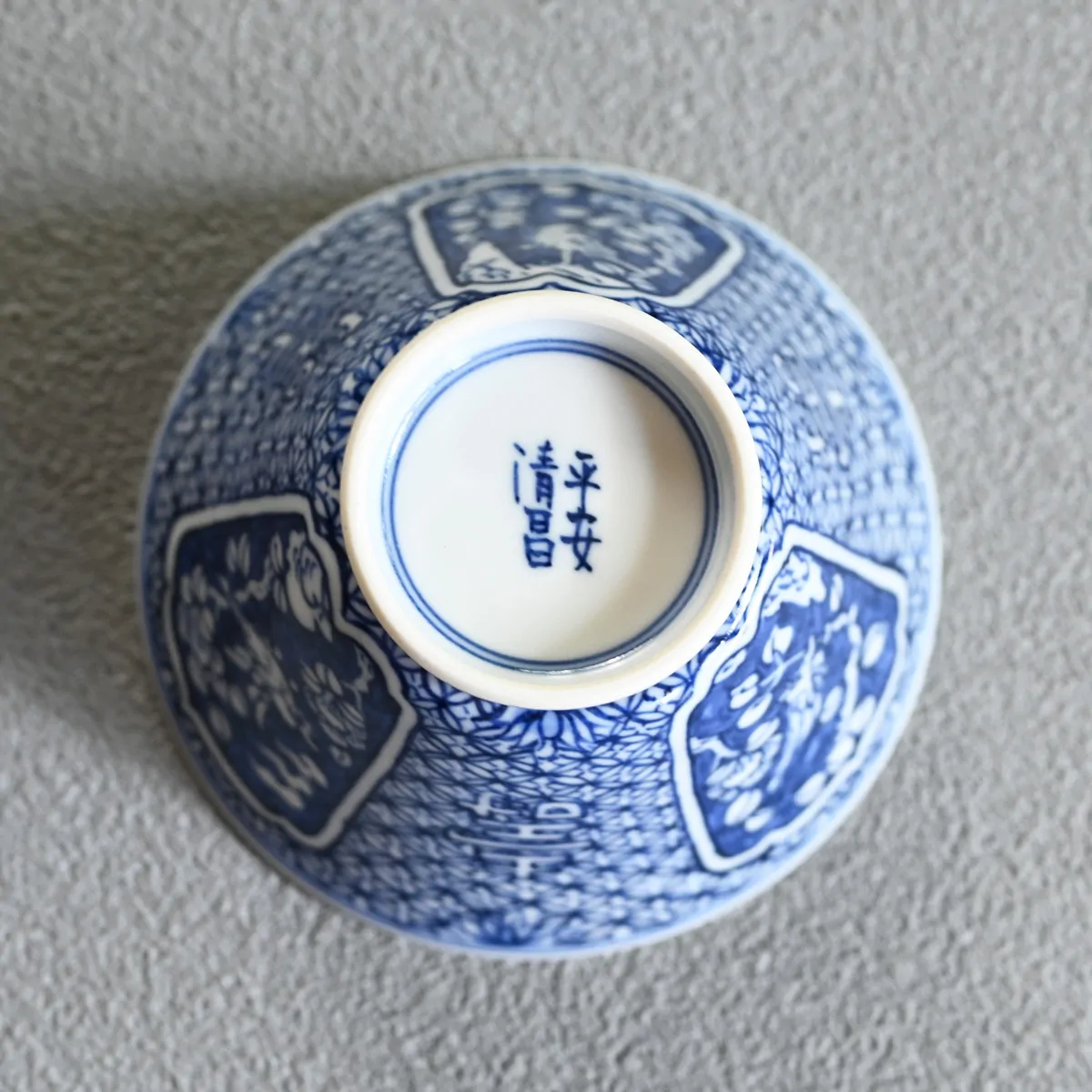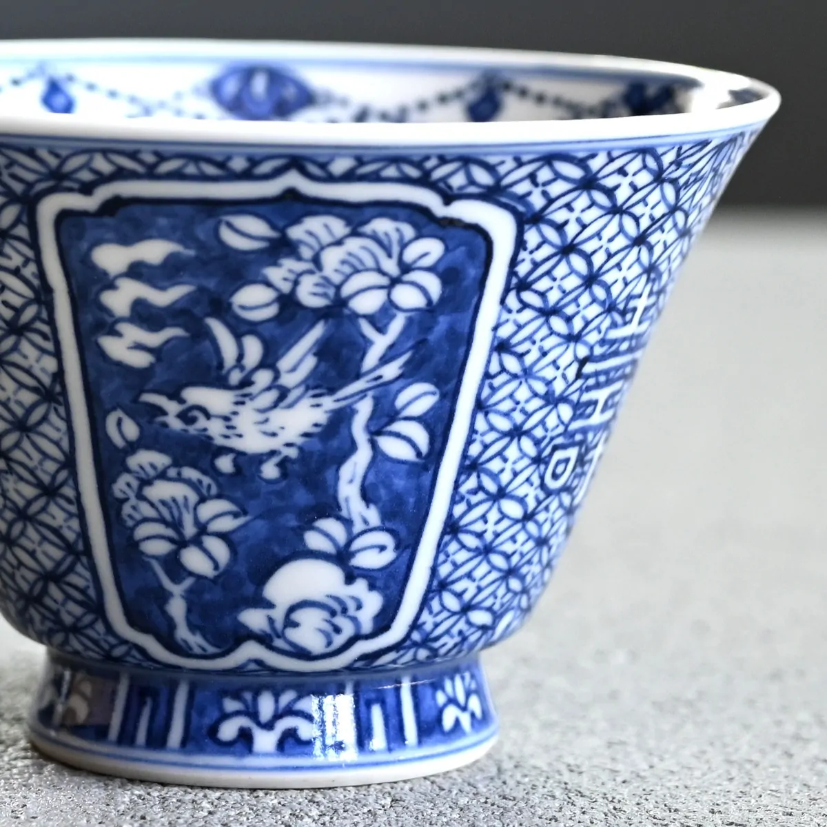 幾何学模様の中に花鳥を緻密に描き込む祥瑞柄が丹念に描かれています。