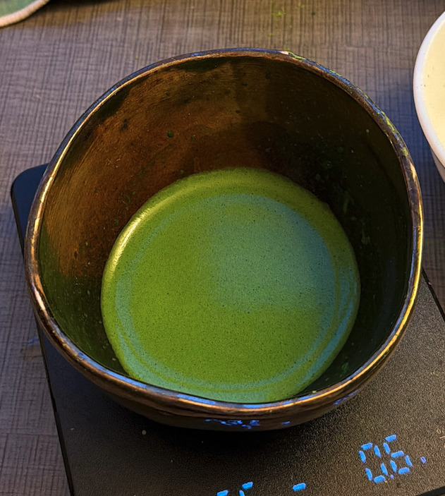 A very solid everyday usucha. Pleasant vegetal sweetness with only a hint of bitterness. Color is also quite nice to behold in the chawan.