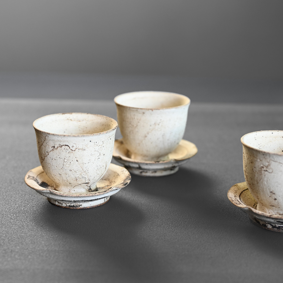 寸法: 湯呑: Φ 6.1 cm, H: 5.1 cm; ソーサー: Φ 7.5 cm, H: 2 cm (± 0.3 cm)