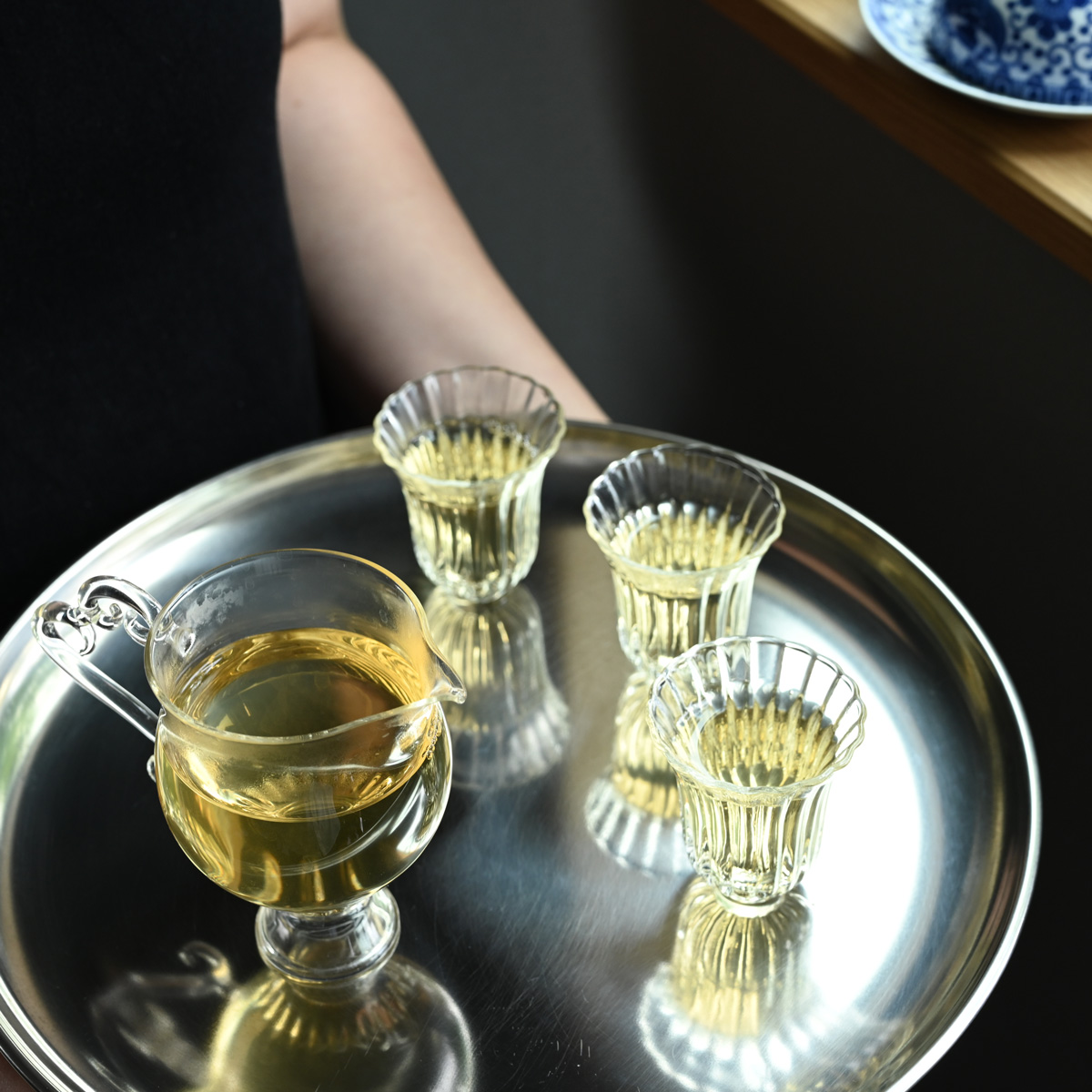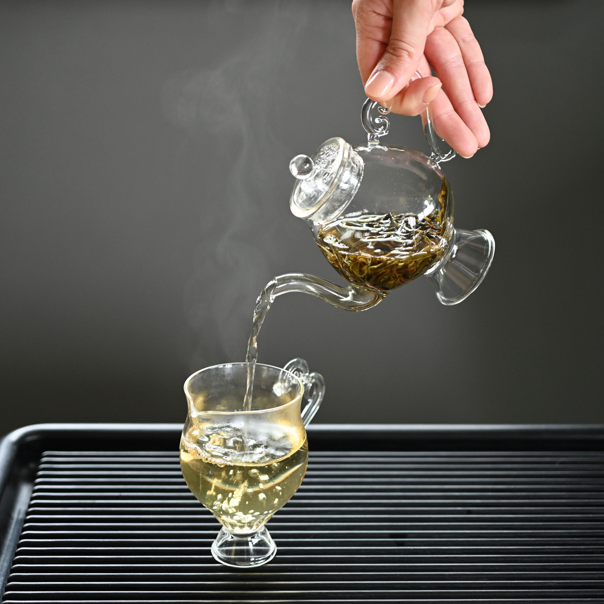 5.茶湯をいったん茶海等に注ぎ入れて味を均一にし、その後それぞれの茶杯に注ぎます。
