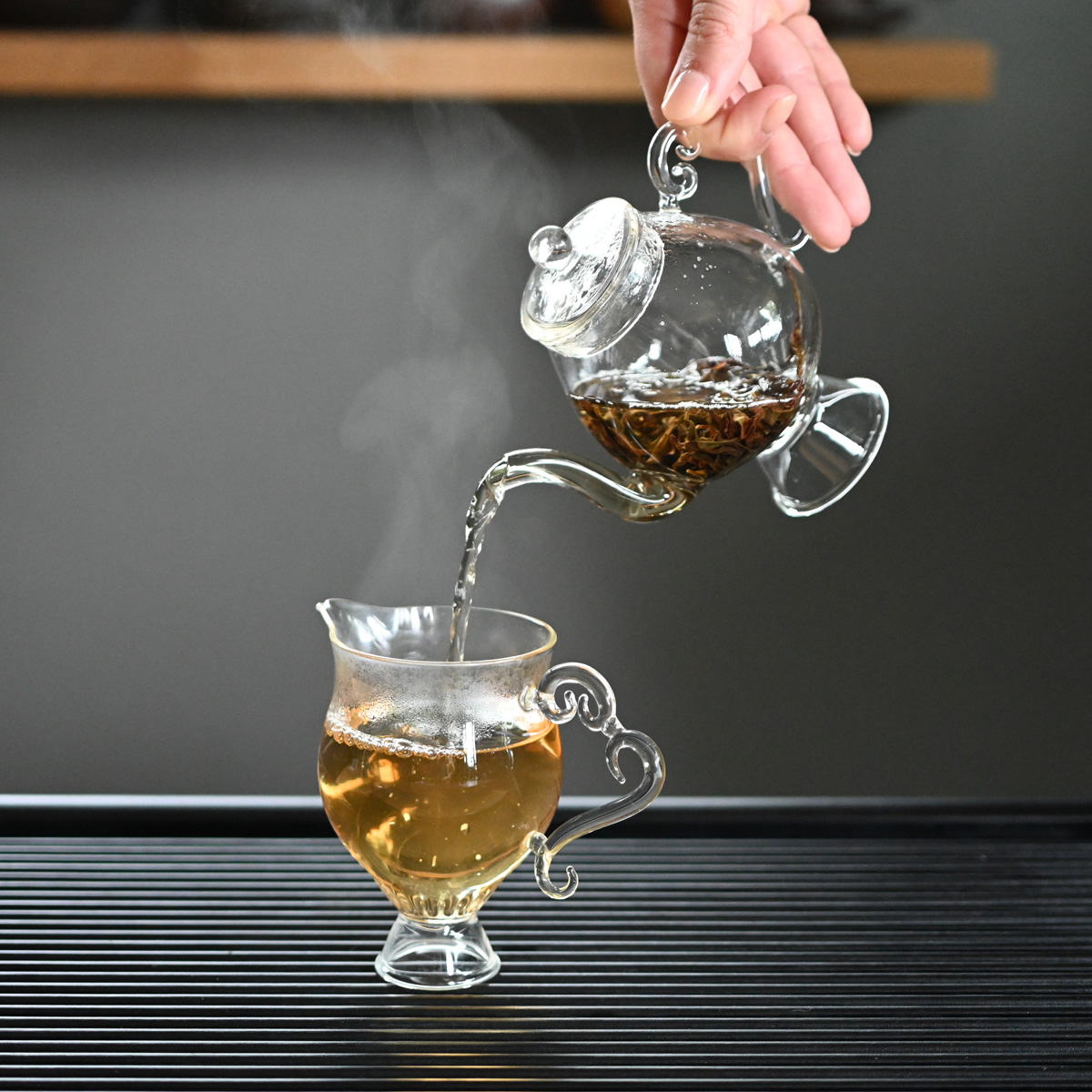 5.茶湯をいったん茶海等に注ぎ入れて味を均一にし、その後それぞれの茶杯に注ぎます。