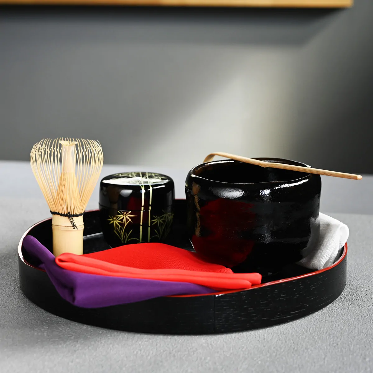 本セットには、このお盆を使った点前に必要な基本道具がすべて揃っています。