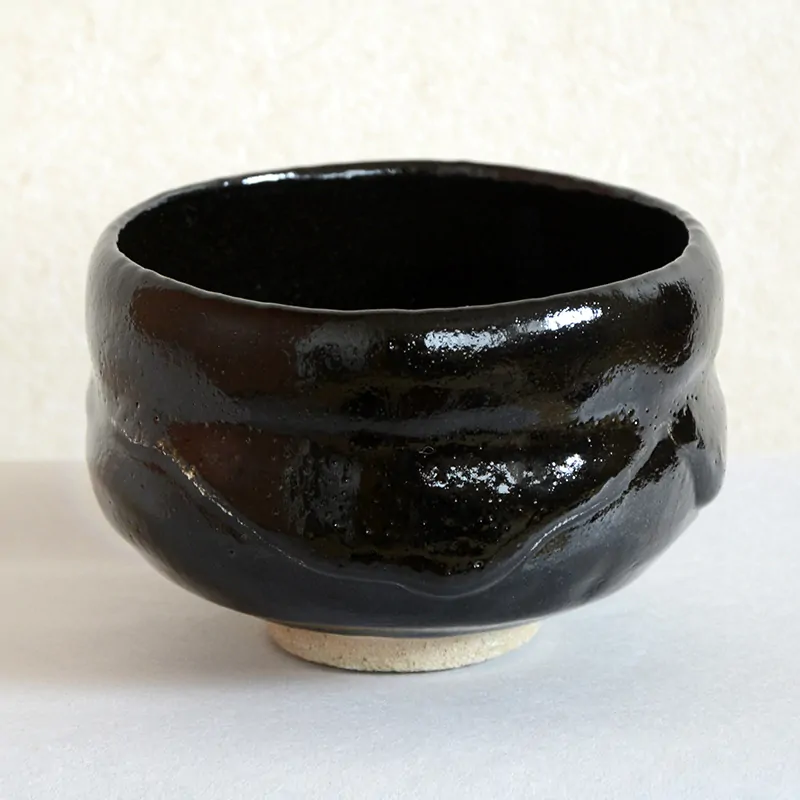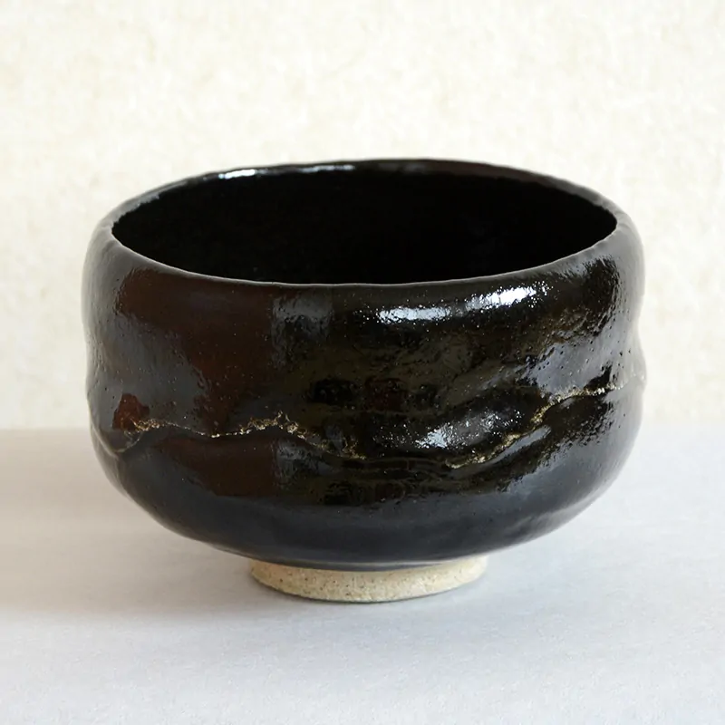 初めてご使用になる前に、米のとぎ汁に茶碗を浸していただくことをお勧めします。茶碗全体が完全に浸かった状態で15分ほど置いてください。とぎ汁に含まれるでんぷん質が楽茶碗特有の気泡を塞ぎ、器をより丈夫にする効果があります。