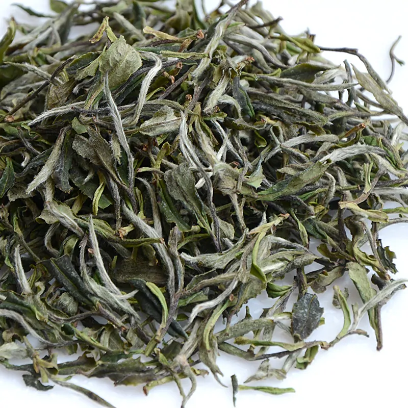 白牡丹は、福建省の建陽などで大白種または水仙種から作られ、一芯二葉で摘まれるのが基本です。茶葉の白い産毛を牡丹に見立て、その名がついたとされています。別名「三白」とも呼ばれ、芽、一葉、二葉とも白い産毛があります。