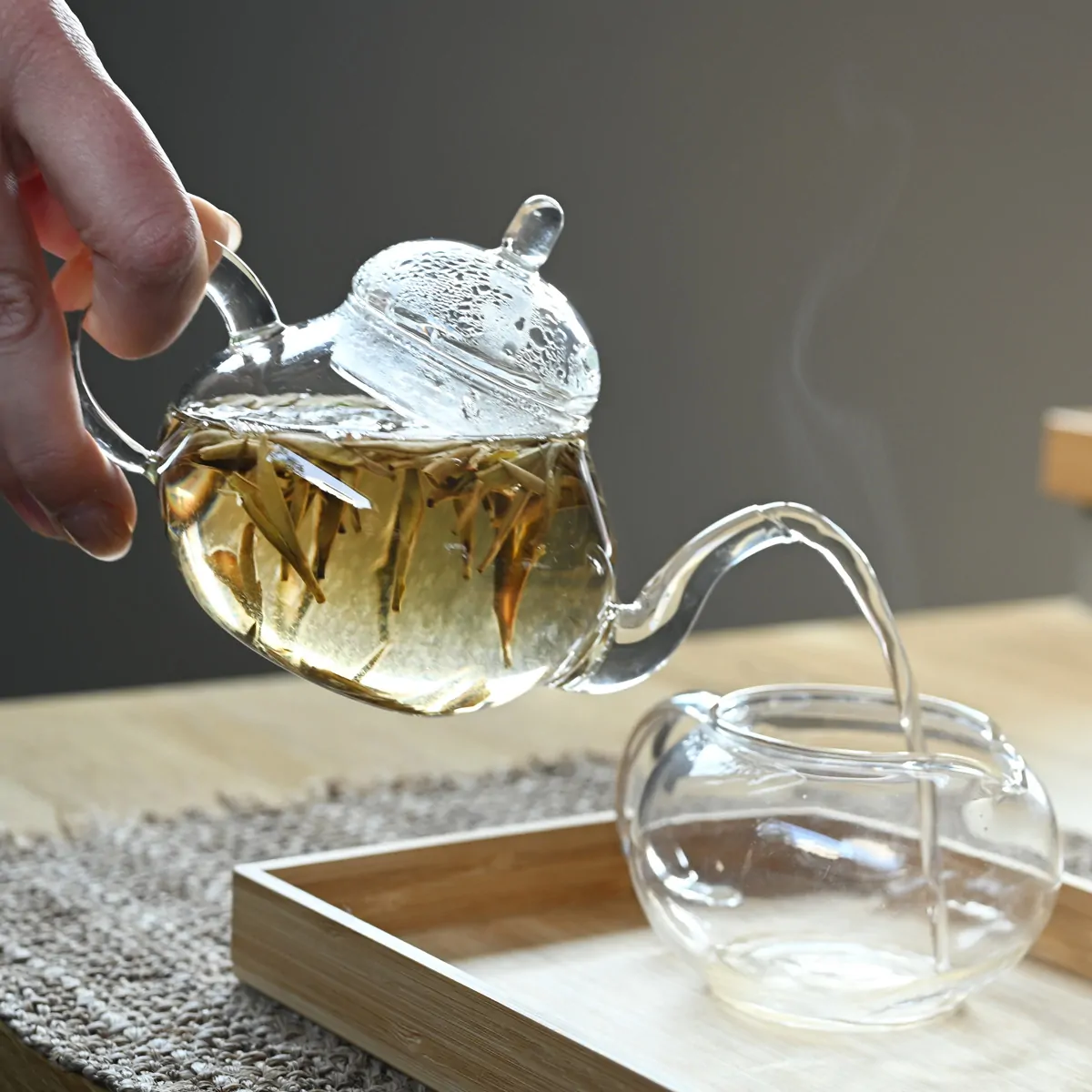 耐熱ガラスのグラスを使うと垂直に立った美しい茶葉が上下に揺れるのをお楽しみいただけます。