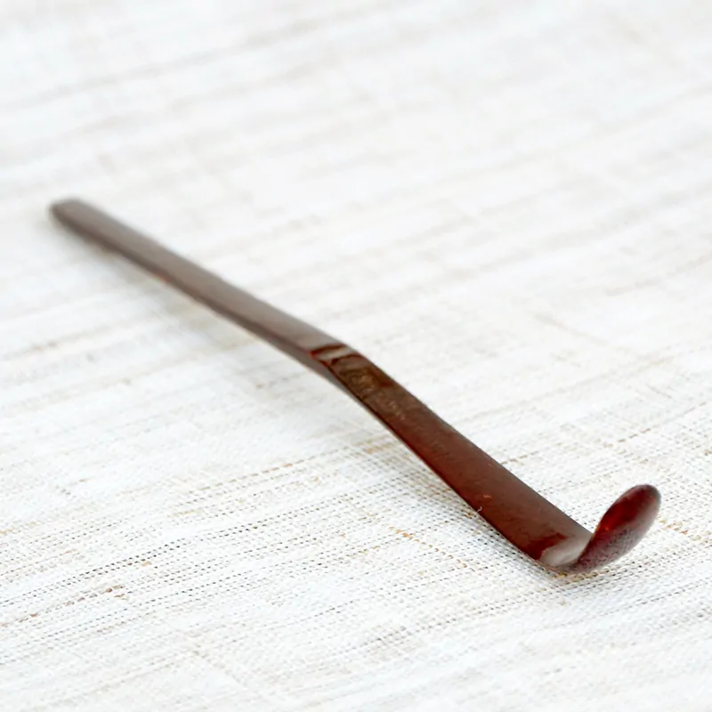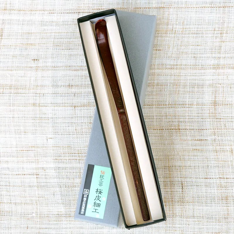 very beautiful chashaku perfect for a spring ceremony since it is made of the sakura bark, it has a captivating shimmer to it the same way cherry tree branches do, and it makes you feel that you are holding the beauty of spring. However, the craftsmanship is a little rough, with small sharp edges along the sides of the tip of the chashaku, also there are small scratches on the inside of the scoop's tip. I understand that making a cherry bark covered bamboo tea scoop is quite difficult, and some room for error is okay because of this, and you cannot see the scrapes from far away. Although due to these scrapes, i would not reccomend using this scoop for serving tea to guests, as they may look at the scoop later during the utensil viewing, and notice such scrapes. It is still perfect for a personal spring ceremony though! :) and i still recommend this scoop to those who love the sakura tree.