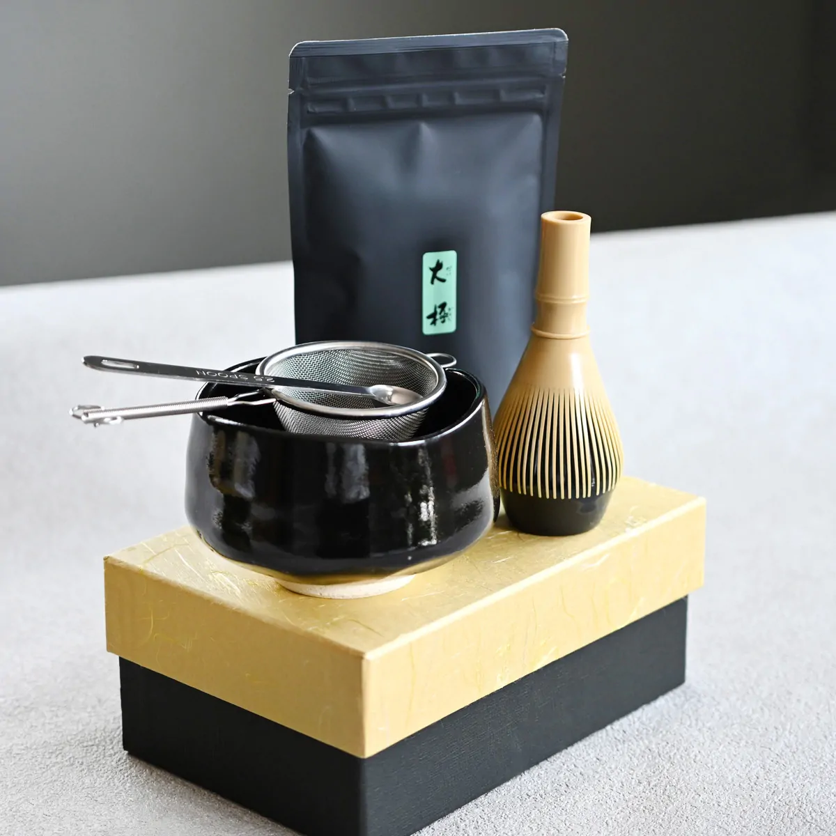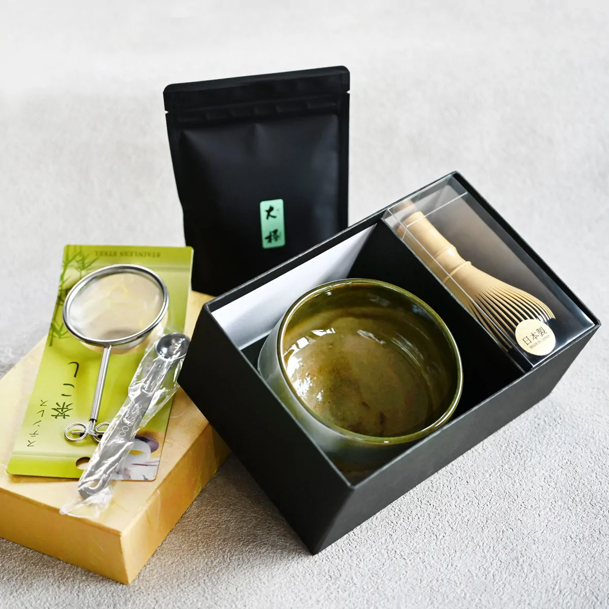 This starter set is such good value for money and is perfect as you are introduced to the world of matcha. The 50g of Matcha Daigyoku they supply you with is very forgiving, even if you don't have a temperature controlled kettle. The whisk is great to use for a couple of weeks while you learn the whisking methods. If you try whisking matcha with a bamboo chasen for the first time, you will likely be clumsy and break one of the prongs or apply too much pressure to the bottom of the cup - a lot can go wrong! However, the bamboo chasen are still far superior to the one in this set and I highly recommend you buy a proper chasen as soon as possible. The Olive green tea bowl is beautiful to drink from and display!