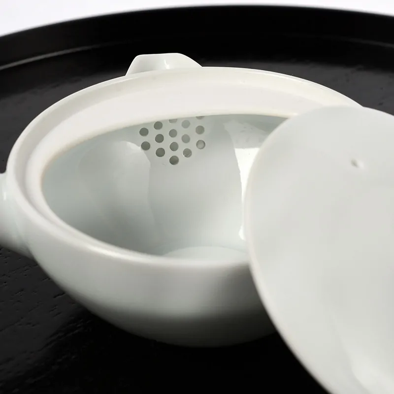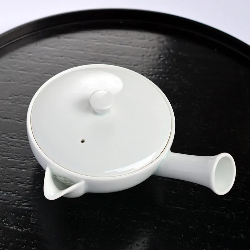 Wonderful little pot. It's easy to tell there's been put thought into the design, such as the extended lip on the front which allows for easy lid-less pouring. I wasn't able to tell this on the photos but the filter isn't flat! It's got a small bulge on it which seems to make pour even more effective. Speaking of pour: this teapot has excellent control, you can do a super slow pour (good for gyokuro), in between speeds, or a super quick empty. The lid fits very securely and is very tight, but there is a slight wobble if you press down on the edges. I'm glad such a well constructed porcelain kyusu exist, as I personally really like the taste of porcelain pots.